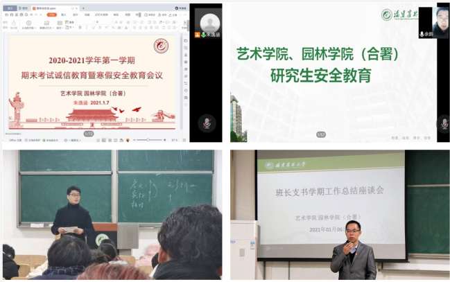 1月6-10日,艺术学院园林学院于旗山校区陆续以线上、线下会议等不同方式,针对不同年级、不同层次、不同群体的学生中开展警示教育,同时就疫情防控、安全稳定和期末考风考纪等工作进行再部署再落实。学院党委副书记曾海滨、全体辅导员、班主任和全院学生参加。