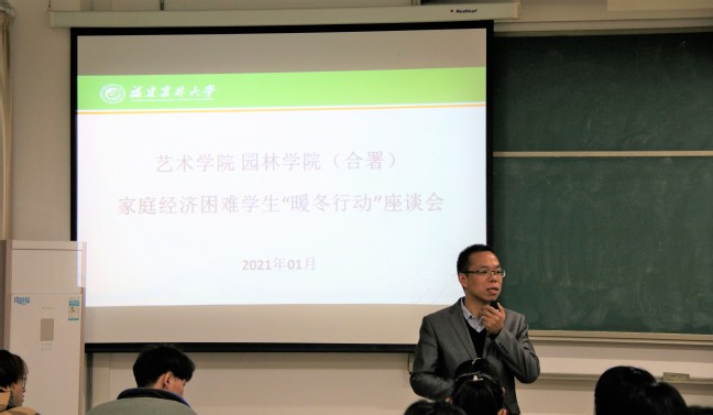 1月6日晚,艺术学院园林学院于旗山校区教学楼108教室召开家庭经济困难学生“暖冬行动”座谈交流会。学院党委副书记曾海滨,辅导员季平、李涵诗参加了会议。