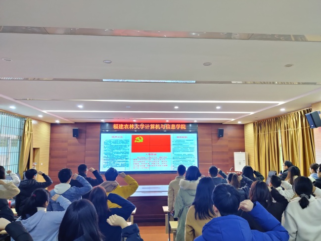 1月12日上午,计算机与信息学院党委在宝铃楼103室举办新党员入党宣誓仪式。学院党委副书记(主持)张金山及2020年下半年新发展党员参加了宣誓仪式。