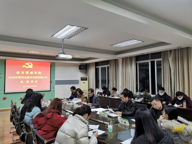 1月14日,经济管理学院党委在学院509报告室组织开展2020年度学生党支部书记抓党建工作述职评议会。学院党委副书记陈建辉主持、学院党委委员、各学生党支部书记、部分师生代表参加评议会。