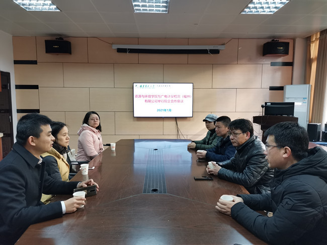 1月14日上午,广电计量检测(福州)有限公司人事部经理郑芝芳等一行3人莅临资源与环境学院,就与学院开展院企合作进行交流座谈。学院党委书记童庆满、副书记修新田、毕业班辅导员参加座谈会。