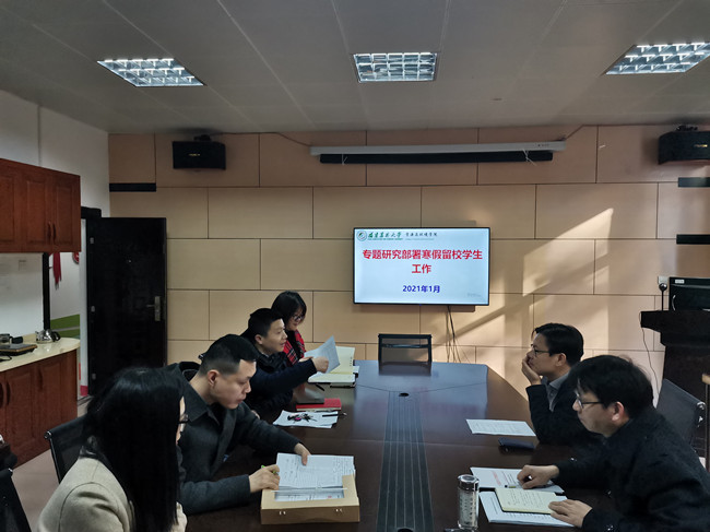 修新田传达了学校寒假留校学生管理工作有关会议和文件精神,通报了学院留校学生总体情况,对学院2021年寒假留校学生教育管理工作进行了具体的安排。