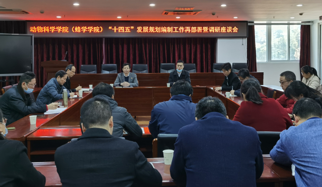 1月21日上午,动物科学学院(蜂学学院)在学院会议室召开“十四五”发展规划编制工作再部署暨调研座谈会。学院领导班子成员、学科带头人、各教学系(实验中心)负责人、教工党支部书记、专任教师代表、政工干部代表等参加了学习会。会议由学院党委书记黄毅军主持。