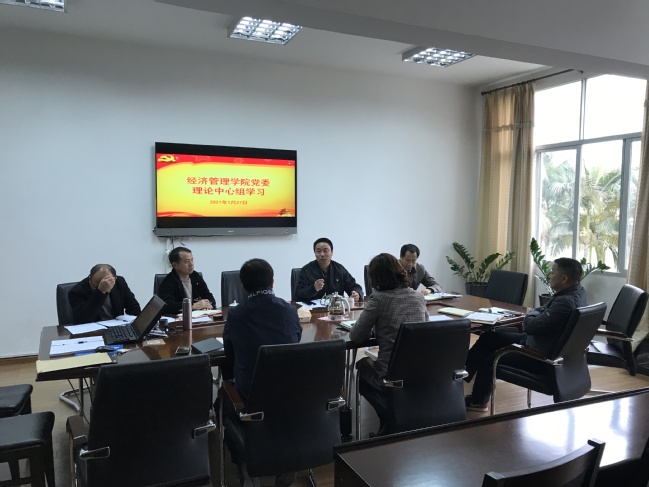1月27日上午,经济管理学院党委理论学习中心组专题学习研讨《习近平总书记教育重要论述讲义》第九讲。会议由院党委书记张开晃主持,学院党委理论学习中心组成员参会。