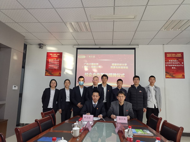 1月28日,资源与环境学院与广电计量(福州)有限公司举行院企合作签约仪式。资源与环境学院党委书记童庆满、副书记修新田,环工系徐波老师、学生辅导员与广电计量(福州)有限公司总经理林永辉、技术部主任林永祥、人力资源部经理康水兰等出席签约仪式。
