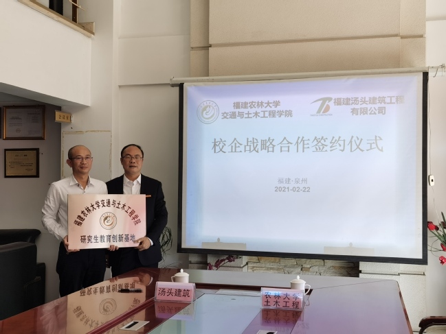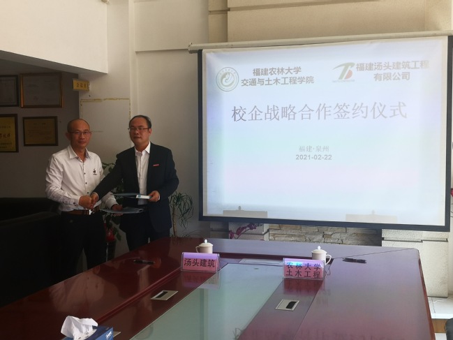 2月22日,交通与土木工程学院与福建汤头建筑工程有限公司举行校企战略合作协议暨奖教奖助学金捐赠签约仪式。学院党委副书记(主持工作)黄文龙一行以及福建汤头建筑工程有限公司总经理郑海容、总经理助理黄青凤等出席签约仪式。