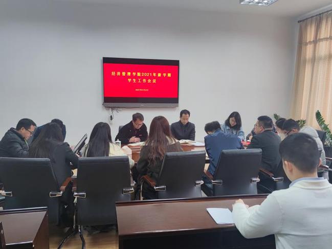 3月2日上午,经济管理学院2021年新学期学生工作会议在院办311室召开。学院党委副书记陈建辉、李健英和全体辅导员参加会议。
