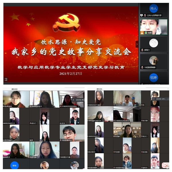 2月27日,计算机与信息学院数学与应用数学专业学生党支部开展了“饮水思源•知史爱党”——我家乡的党史故事分享交流会。学院党委委员、支部书记廖云茜、支部党员、入党积极分子等近60人参加了本次党史学习教育主题党日活动。活动由支部教工党员徐昊主持。
