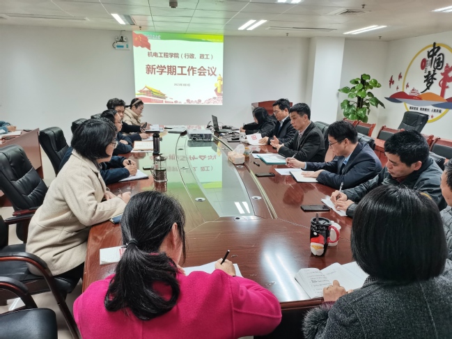 3月3日上午,机电工程学院召开新学期工作会议,学院党政领导班子、行政人员及政工干部20余人参加了会议,会议由学院党委书记池有忠主持。