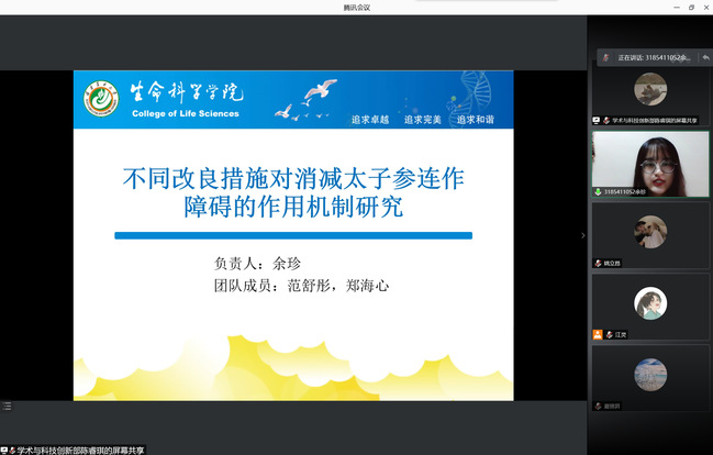 3月5日上午,生命科学学院通过腾讯会议平台举办第四届“挑战杯”课外学术科技作品竞赛暨第十四届科研成果汇报会。竞赛邀请何海斌、张灵玲、黄天培、鲍坚东和张志兴等专家教授担任本次竞赛评委。