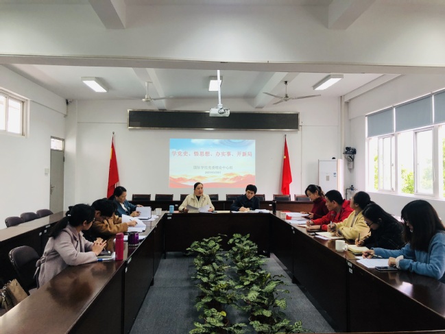 3月8日下午,国际学院党委召开理论学习中心组扩大会议,专题学习习近平总书记在党史学习教育动员大会上的重要讲话精神,院党委书记张华英主持,理论中心组成员、党员科级干部、政工干部参加学习会。