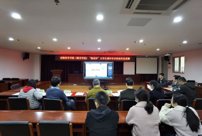 3月7日,动物科学学院(蜂学学院)于新圣农楼7楼大会议室通过腾讯会议平台举办“挑战杯”大学生课外学术科技作品选拔赛。比赛邀请了院长陈吉龙、生命科学学院林向民教授、张灵玲教授、植物保护学院潘晓鸿副教授、林学院吴松青副教授担任评委。院党委书记黄毅军、副书记徐通明、政工干部、指导教师、学生代表观摩比赛。