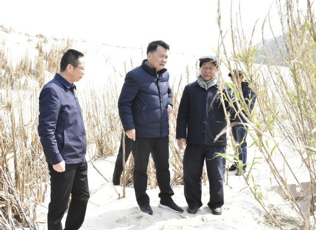 实地考察平潭长江澳风口流沙菌草防风固沙示范基地