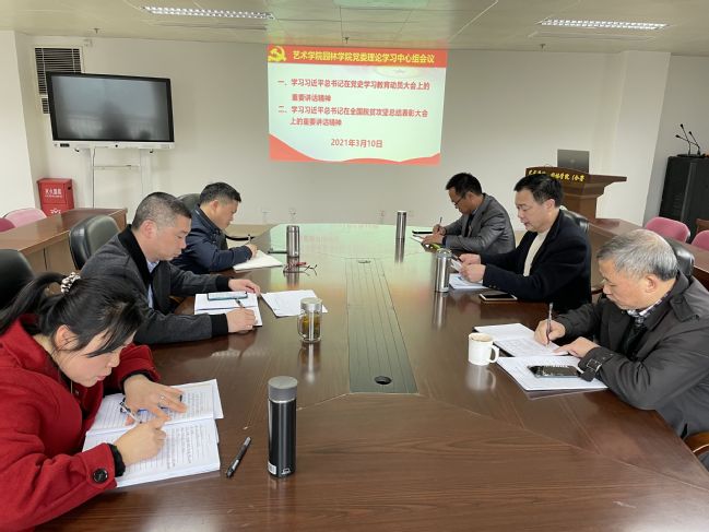 3月10日下午,艺术学院园林学院党委书记陈为德主持召开学院党委理论学习中心组会议,专题学习研讨习近平总书记在党史学习教育动员大会上的重要讲话精神以及习近平总书记在全国脱贫攻坚总结表彰大会上的重要讲话精神。与会同志深入学习研讨,并研究部署学院贯彻落实意见。