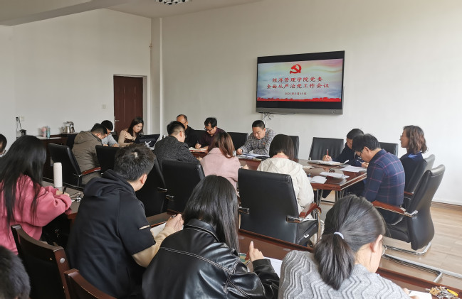 3月15日下午,经济管理学院在经管楼311召开2021年全面从严治党工作会议。院党委书记张开晃主持会议,院党委委员、各下属党支部书记参会。