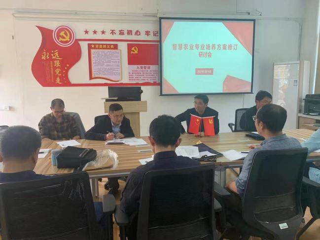 研讨会上,参会老师根据专业申报时评审专家反馈意见对培养方案课程设置进行的交流,与会老师根据智慧农业培养需求提出修改意见。