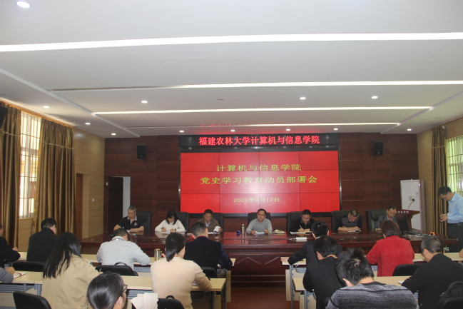 3月17日下午,计算机与信息学院在宝铃楼103召开党史学习教育动员部署会。学院领导班子、党委委员、各党支部书记、系(室)主任和科级干部参加会议,会议由学院党委副书记(主持)张金山主持。