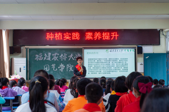 据悉,园艺学院团委与福州市台江第四中心小学于2019年合作共建,每年会定期开展园艺栽培实践等志愿服务、授课活动,福州市台江第四中心小学的《在园艺种植劳动实践中培养学生科学素养》于2019年荣获首批福建省百个中小学劳动教育实践特色项目。