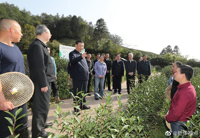 22日下午,正在福建考察调研的习近平总书记,来到武夷山市星村镇燕子窠生态茶园,察看春茶长势,了解当地茶产业发展情况。听说近年来在科技特派员团队指导下,茶园突出生态种植,提高了茶叶品质,带动了茶农增收,习近平十分高兴。他指出,武夷山这个地方物华天宝,茶文化历史久远,气候适宜、茶资源优势明显,又有科技支撑,形成了生机勃勃的茶产业。要很好总结科技特派员制度经验,继续加以完善、巩固、坚持。要把茶文化、茶产业、茶科技统筹起来,过去茶产业是你们这里脱贫攻坚的支柱产业,今后要成为乡村振兴的支柱产业。(文字记者:张晓松、朱基钗;摄影记者:鞠鹏、王晔、燕雁)