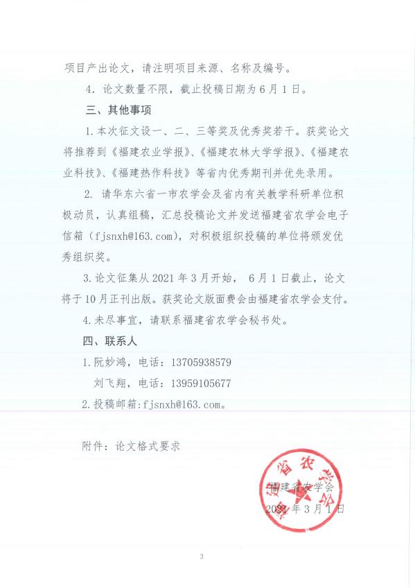 转发:关于征集福建省农学会成立70周年学术论坛暨2021年度华东六省一市农学会学术年会论文的通知