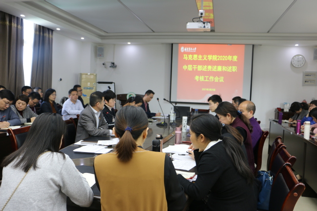3月25日下午,马克思主义学院党委在明德楼613会议室召开2020年度中层干部述责述廉和和述职考核会议,会议由学院党委书记雷国铨主持,学院全体教职工参加会议。