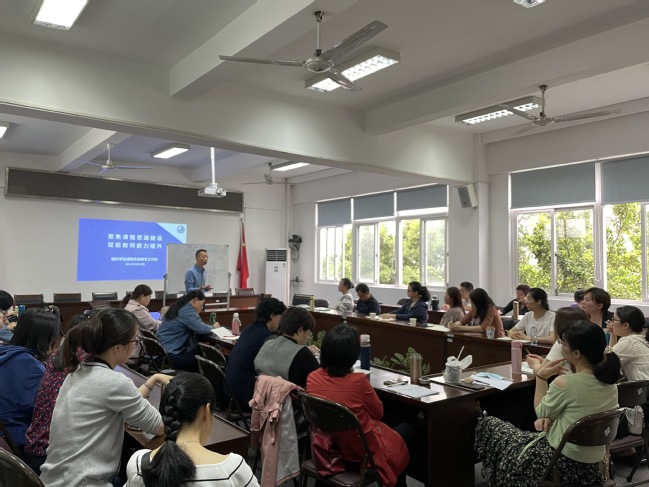3月30日下午,国际学院“聚焦课程思政建设 赋能教师能力提升”教学沙龙活动在国际学院303会议室开展。本次教学沙龙活动由国际学院课程思政教学工作坊主办,由副院长刘敏主持,校教师教学培训师、经济管理学院胡涛老师担任主讲,国际学院30余位专任教师参加了本次教学沙龙活动。