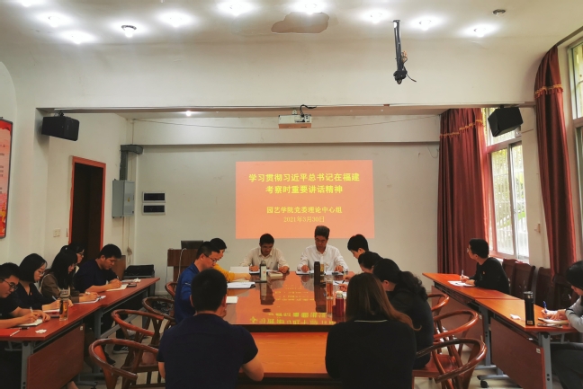 3月30日下午,园艺学院党委理论学习中心组召开理论中心组(扩大)学习会,专题学习习近平总书记在福建考察时重要讲话精神、省委常委扩大会议精神和全省领导干部大会精神,研究学习宣传和贯彻落实工作。学院各党支部书记列席会议。会议由学院党委书记肖红新主持。