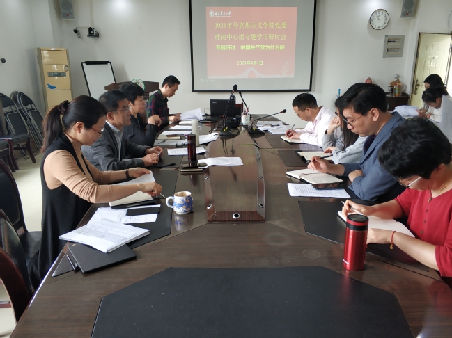 4月1日上午,马克思主义学院党委理论中心组(扩大)在明德楼613召开中国共产党为什么“能”专题学习研讨会,学院领导班子、党委委员、科级干部、支部书记参加会议,会议由学院党委书记雷国铨主持。