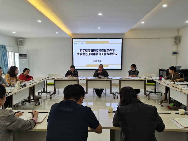 会议强调,当前新冠肺炎疫情防控进入常态化,学校高度重视学生心理健康教育,对学生长期居家学习、返校复学可能出现的种种心理问题要进行预判,积极行动,多措并举,以“服务学生、立足重点、突出实效”为目标,有序开展常态化疫情防控形势下的学生心理健康教育与服务工作。