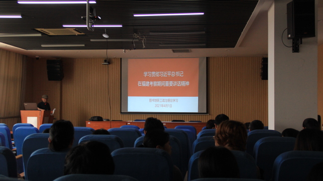 4月1日下午,图书馆组织全体教职工在逸夫图书馆二楼视听阅览室学习贯彻习近平总书记在福建考察时的重要讲话精神。