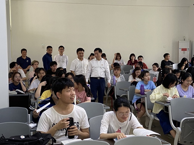 曾华平副书记一行先后深入考场、教室、办公场所,详细了解研究生复试现场准备情况、教学运行、辅导员、专任教师办公等情况,亲切慰问了一线教师、辅导员及工作人员。