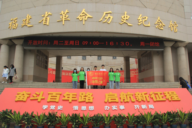 团队成员在福建省革命历史纪念馆瞻仰革命遗址、缅怀革命先烈,开展“红色之旅,筑梦同行”的主题学习活动。此行的目的一是纪念抗日战争时期英勇献身的烈士,感受当下幸福生活的来之不易;二是学习前辈们艰苦奋斗、献身自我的爱国精神,将坚定不移的崇高信念化作创新创业的不竭动力,勇于开拓,为我国“十四五”规划和“乡村振兴”贡献新时代青年的新思想。