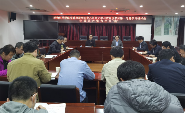4月8日,动物科学学院党委在学院会议室召开理论学习中心组专题学习研讨会。学院党委委员、领导班子成员、教工党支部书记、各教学系(实验中心)负责人、科级干部、辅导员等参加了学习研讨会。会议由学院党委书记黄毅军主持。
