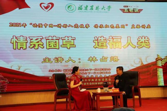 菌草技术发明人、联合国菌草技术项目首席技术顾问,国家菌草工程技术研究中心首席科学家、生命科学学院博士生导师、“全国脱贫攻坚先进个人”林占熺研究员讲述了自己为党工作50多年的心路历程。林占熺怀着一颗“菌草济天涯,造福全人类”的赤子之心,通过“要把论文写在祖国大地上,写进农民的钱袋里!”“共产党员该拼就要拼”等为党工作,为民奉献,为人类命运共同体奋斗的故事,奏响了一曲时代凯歌,谱写了一名老共产党员的人生壮丽诗篇,引发参加活动的师生强烈反响。