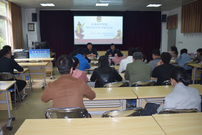 近日,习近平总书记对打击治理电信网络诈骗犯罪工作作出重要指示,强调要加强社会宣传教育防范,坚决遏制此类犯罪多发高发态势,为建设更高水平的平安中国、法治中国作出新的更大的贡献。为深入学习贯彻习近平总书记重要指示,生命科学学院邀请淮安派出所所长陈超为学院政工干部、班主任举行预防电信网络诈骗专题培训会,会议由学院党委副书记刘强主持。