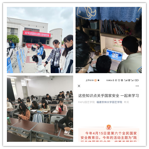 4月15日是第六个全民国家安全教育日,为进一步增强学生维护国家安全意识,树立国家安全观,提高全民维护国家安全责任感,园艺学院开展形式多样全民国家安全教育主题活动。