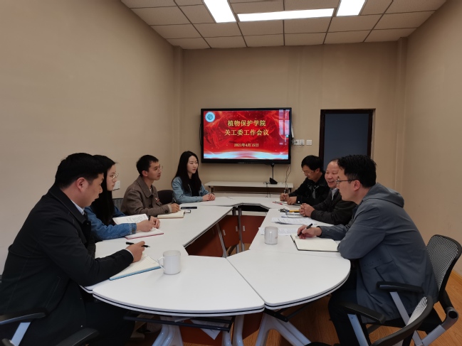 4月15日下午,植物保护学院党委副书记、关工委主任丁喆在博学楼706主持召开关工委工作推进会,传达学习学校关工委会议精神,部署推进学院关工委工作。院关工委副主任黄居昌和关工委部分成员、辅导员参加会议。