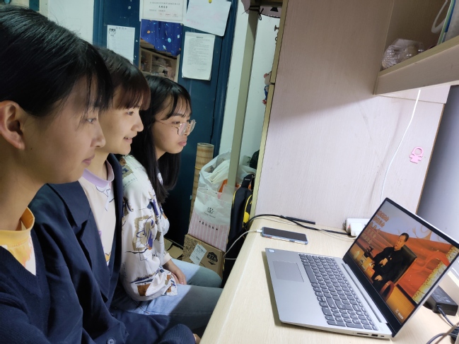 学生在宿舍观看专题节目