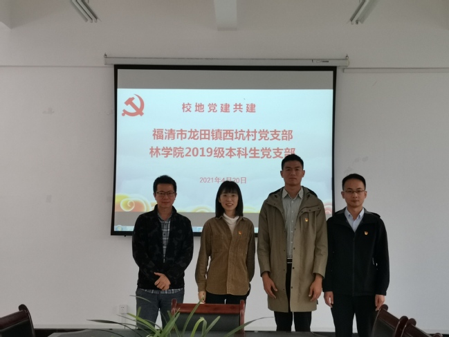 4月20日上午,林学院与福清市龙田镇西坑村校地党建共建签约会暨座谈会在诚A206会议室举行。西坑村党支部书记薛洪敏、学院2019级本科生党支部书记韦沁妤、党员谢国富、林学(森林康养)专任教师张玮尹参加会议。