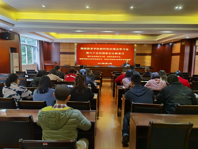4月15日下午,继续教育学院在学院三楼会议室开展教师政治理论学习会。围绕第六个全民国家安全教育日主题“践行总体国家安全观,统筹发展和安全,统筹传统安全和非传统安全,营造庆祝建党100周年良好氛围”开展学习。院党委书记范焕谦主持学习会,全体教职工参加。
