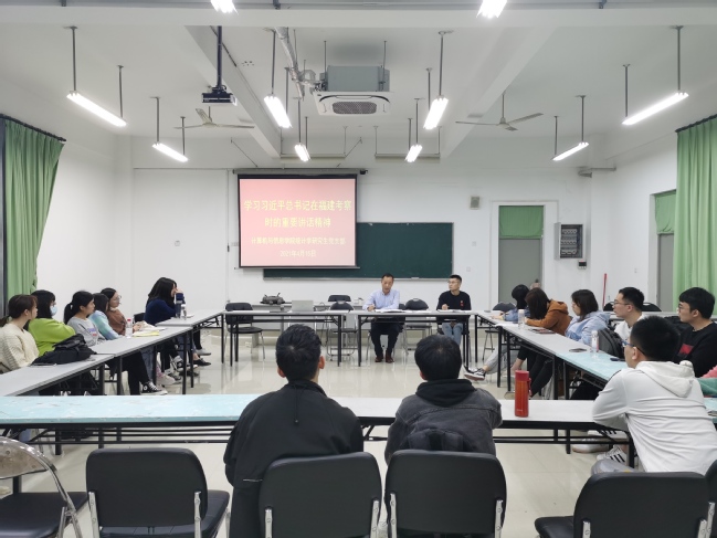 4月15日,计算机与信息学院统计学研究生党支部在宝铃楼108教室组织支部党员学习习近平总书记在福建考察时的重要讲话精神、习近平总书记致厦门大学建校100周年贺信精神,支部党员共计26人参加了学习,学习会由支部书记张文元主持。