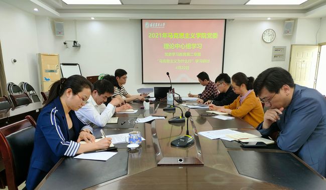 4月22日,马克思主义学院党委理论中心组在明德楼613召开理论中心组学习会,开展党史学习教育读书班第二专题“马克思主义为什么行”的学习研讨,院党委书记雷国铨主持会议,班子成员、党委委员、科级干部参加了会议。