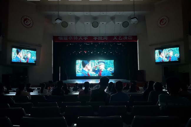 4月23日晚,我校于金山校区大礼堂举行第三场“电影周”活动,近270名学生观看党史教育电影《建军大业》。