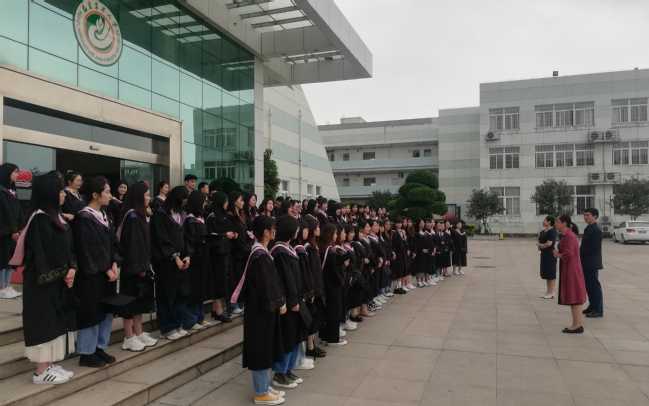 4月24日,国际学院在明德楼前为2020届毕业生组织了一场“迟到”的毕业典礼,院党委书记张华英、院长吴锦程、院党委副书记王小榕,外语系专任教师、辅导员与2020届英语专业毕业生参加了典礼。