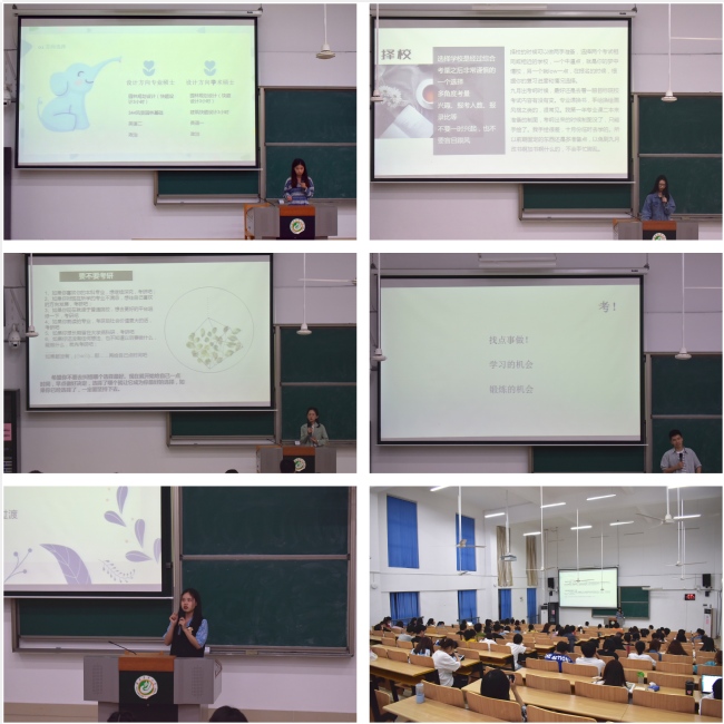 近日,艺术学院园林学院于旗教100室举办“我为同学办实事”之考研经验分享交流会。韦春怡、杨松敏、刘玲杉、檀东昊、林佳璇等5位考研代表做经验分享,150余名低年级学生参加。