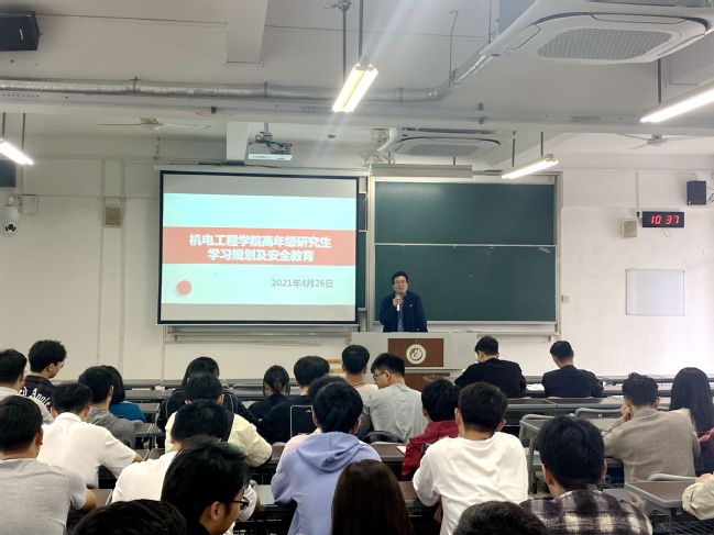 4月25-26日,机电工程学院分别旗山校区、金山校区召开了研究生学习规划及安全教育会议,学院叶大鹏教授应邀担任主讲嘉宾,学院全体研究生170余人参加了会议。