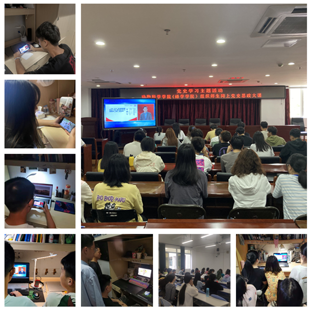 4月24日下午,动物科学学院(蜂学学院)以线上和线下相结合的方式,组织师生收看由教育部社科司与人民网联合举办的全国大学生同上“四史思政大课”之第一堂课“党史思政大课”。