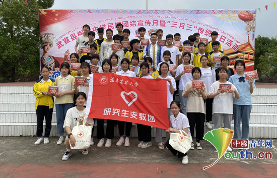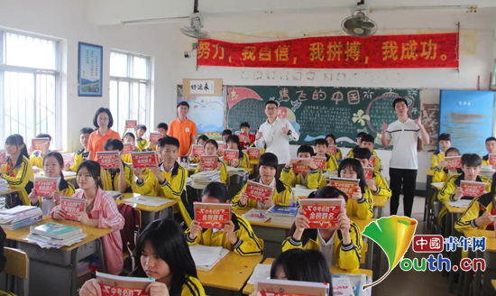 开云网页版研究生支教团成员与桐岭中学初三学生合影。开云网页版研支团 供图