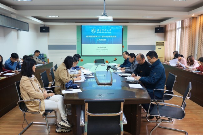 4月28日下午,经济管理学院在经管楼509举行2021届毕业生就业创业工作推进会,院党委书记张开晃,院党委副书记李健英,副院长石德金、李坤明,各系主任、毕业班班主任及毕业班辅导员出席本次会议,会议由李健英主持。