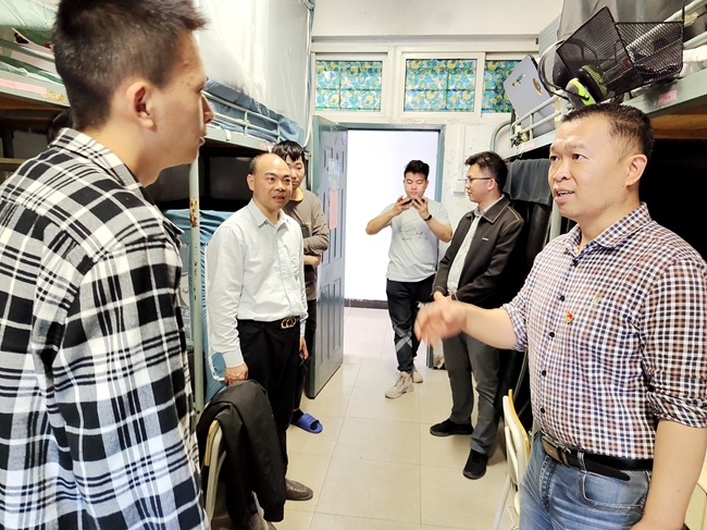 检查组深入学生宿舍区域,认真检查了学生宿舍,宿舍走廊以及消防设施是否存在安全隐患。对发现的问题及时督促学生或反馈给相关部门进行整改。同时,检查组还向宿舍同学强调了宿舍用水用电安全,防火防骗安全,并关心了解同学们的思想、学习和生活情况,并向五一期间返乡的同学强调在外一定要做好防疫措施。